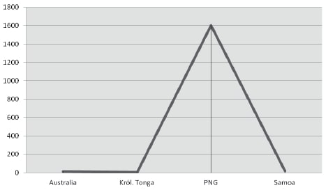 Wykres 11. Liczba eksponatów w zbiorze Oceania z Australią z uwzględnieniem poszczególnych państw