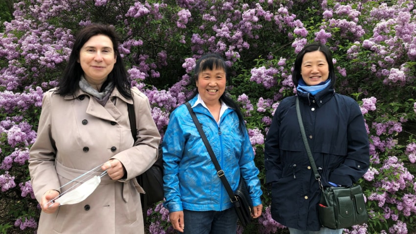 Liu (w środku) na spacerze w ogrodach wilanowskich z panią Basią i s. Janą (fot. Jacek Gniadek SVD)