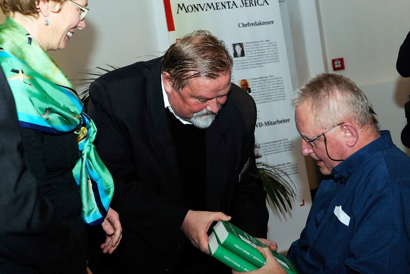 O. Zbigniew Wesołowski SVD wręcza o. Malkowi „Festschrift” (fot. archiwum Steyler Missionare).