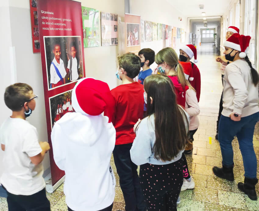 Swoją wdzięczność dzieci przełożyły na konkretne działania, ponieważ rownolegle z wystawą odbyła się zbiórka przyborów szkolnych w ramach tegorocznej akcji “Uczniowie-uczniom”.