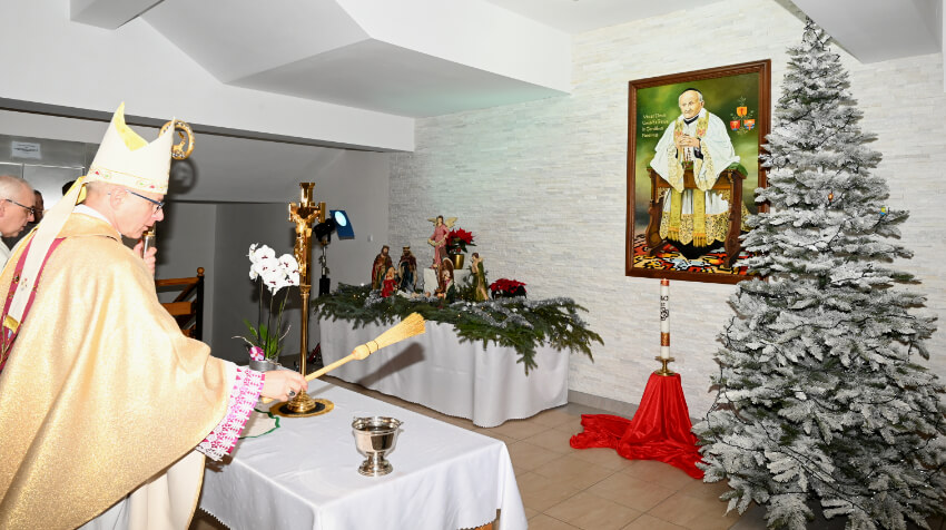 Po uroczystym błogosławieństwie Jego Ekscelencja udał się wraz z wiernymi do holu głównego, aby tam poświęcić obraz przedstawiający patrona domu. To wierna kopia wizerunku założyciela, jaki znajduje się w Domu Macierzystym w Steylu. Praca ta została wykonana przez malarkę z Zamościa, panią Małgorzatę Gontarz.