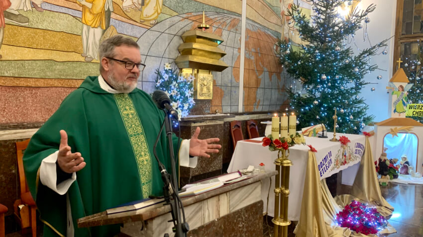 O. Dariusz Pielak SVD podczas rekolekcji Przyjaciół św. Arnolda Janssena w Laskowicach (fot. Krzysztof Kołodyński SVD)