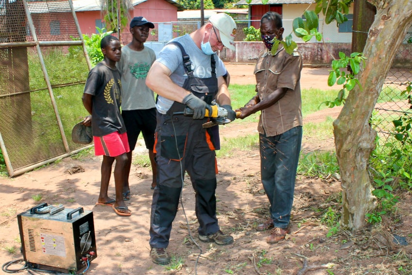 O. Edward Sito SVD spawa bramę w internacie Sao Tiago Brendel, Angola. (fot. archiwum Edwarda Sito SVD)